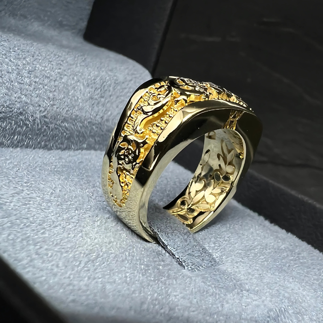 A beleza desse anel transcende a joalheria comum; é uma peça que transporta você de volta no tempo, para os dias de glória da antiga Atenas.