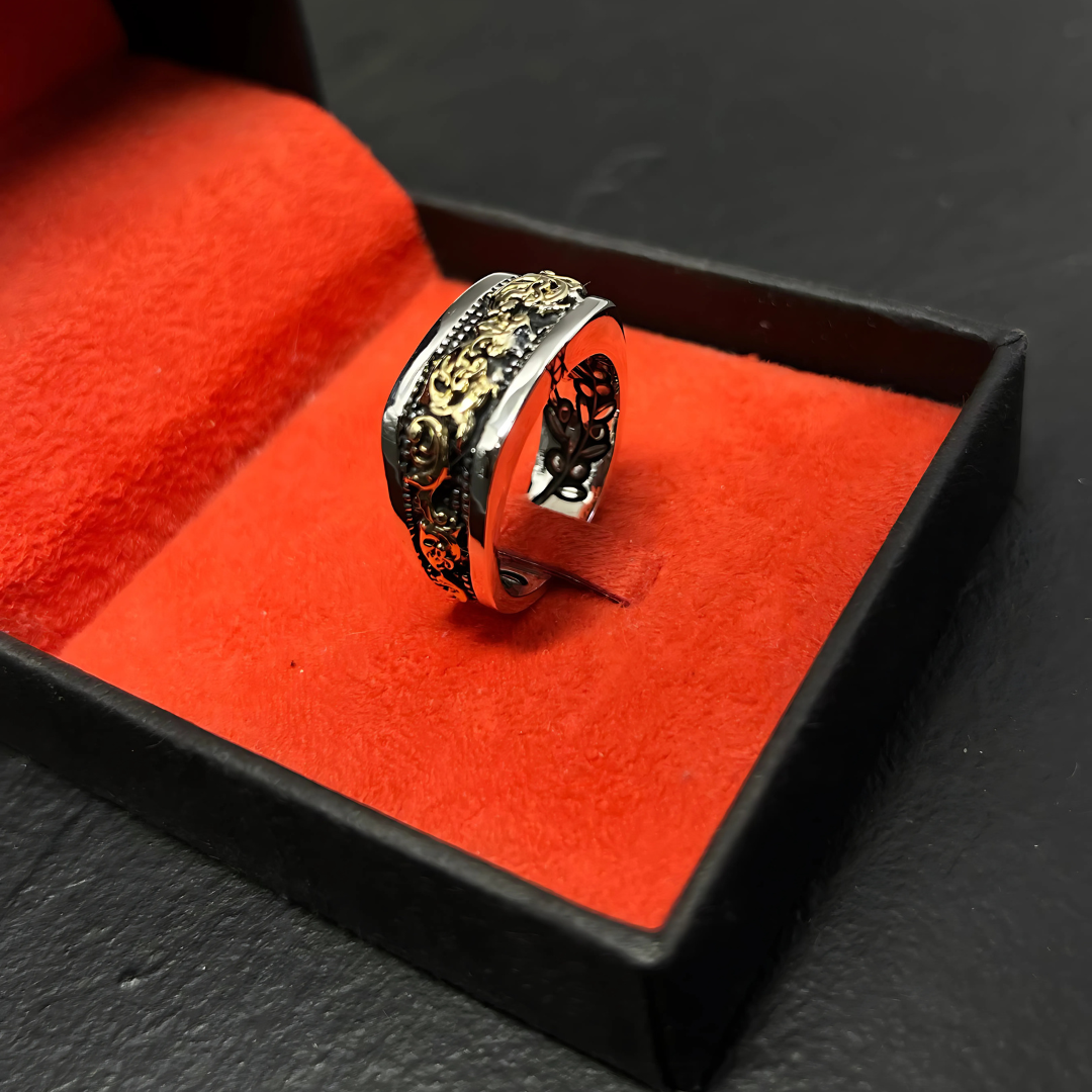 •Anel inspirado nos arabescos do Templo Parthenon é uma celebração da magnificência da arquitetura clássica grega e da elegância atemporal de seus padrões ornamentais.