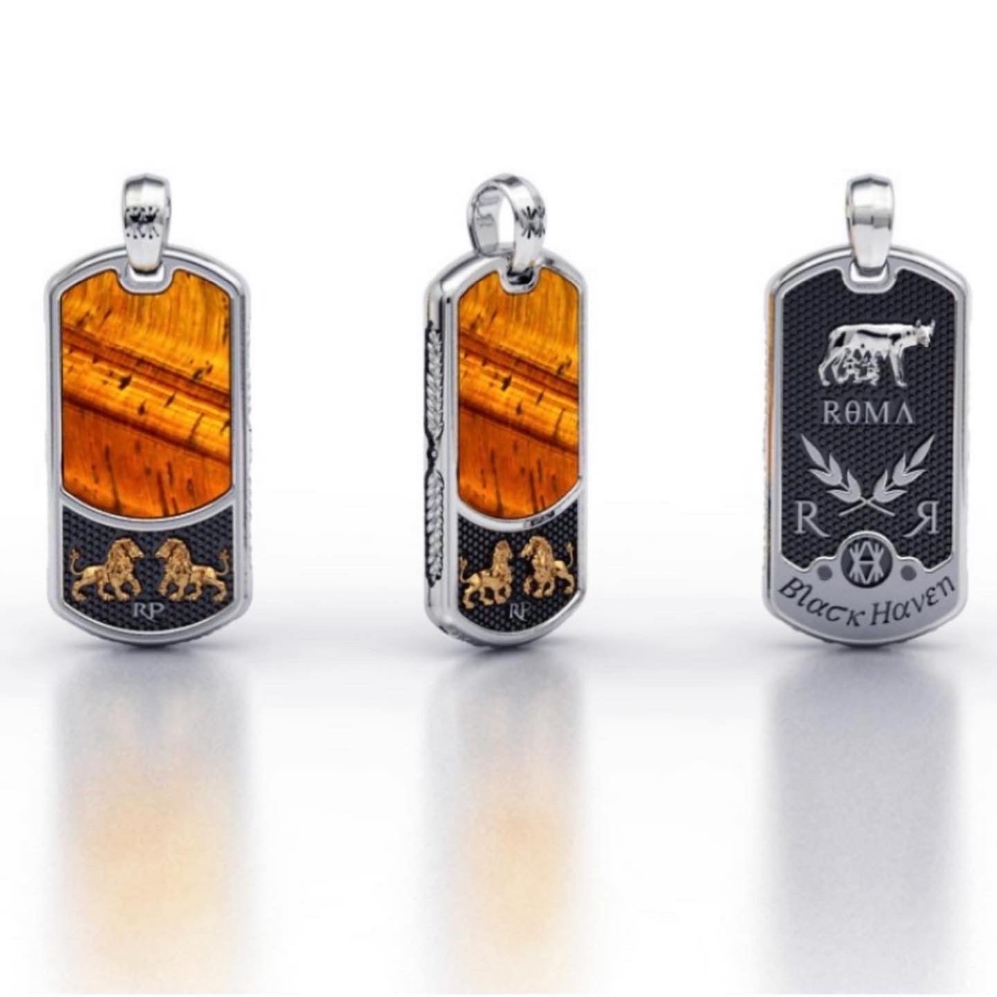 COLAR RØMA PRATA & OURO COM PEDRA OLHO DE TIGRE
